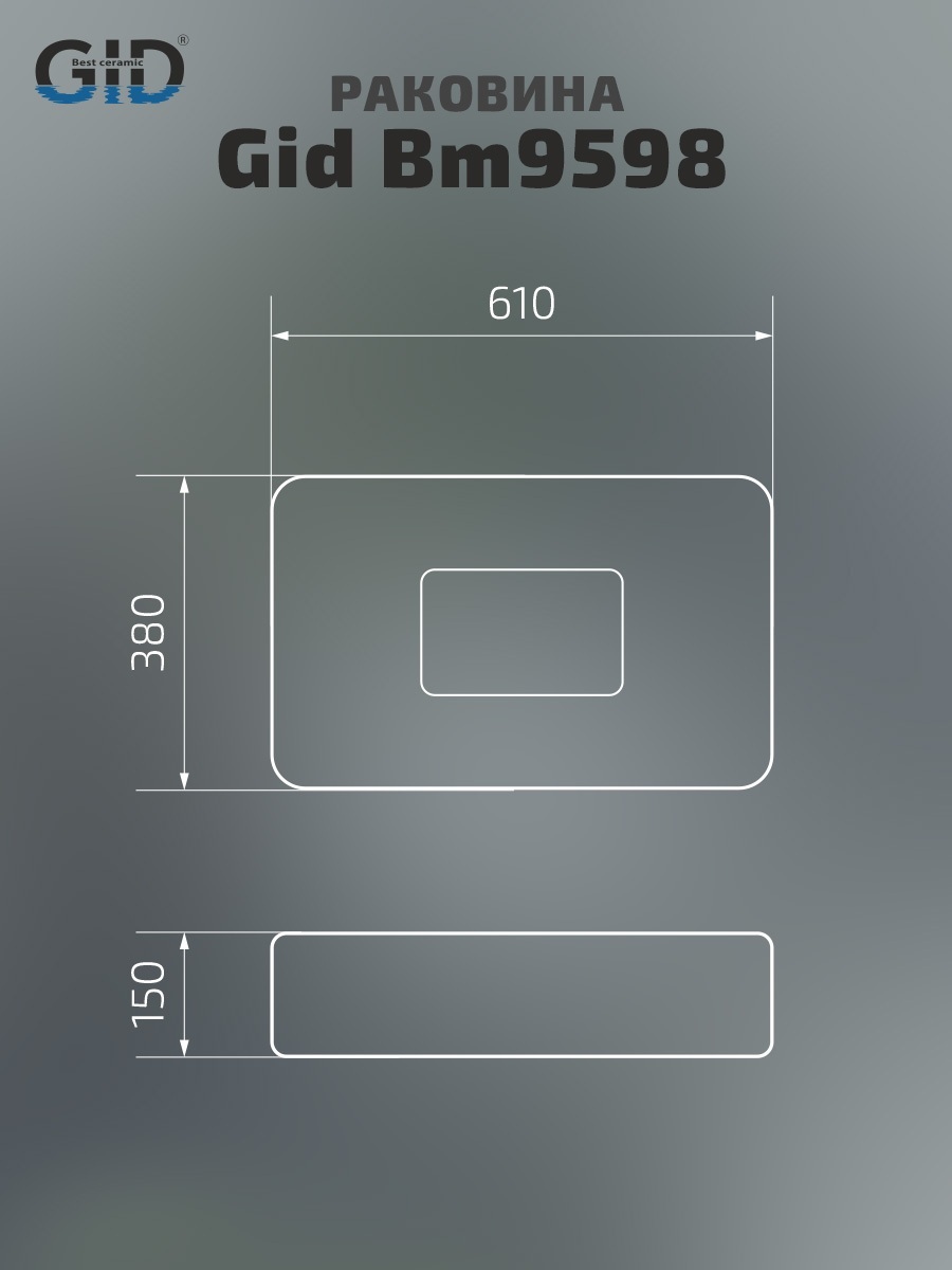 Раковина Gid Bm9598 53365 накладная черная матовая 61x38x15