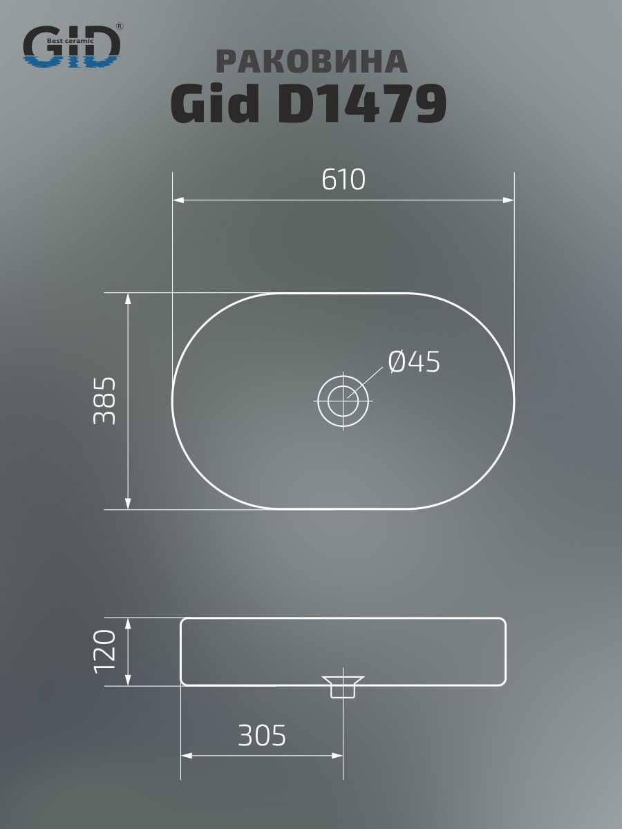 Раковина Gid D1479 51203 накладная белая 61x38.5x12