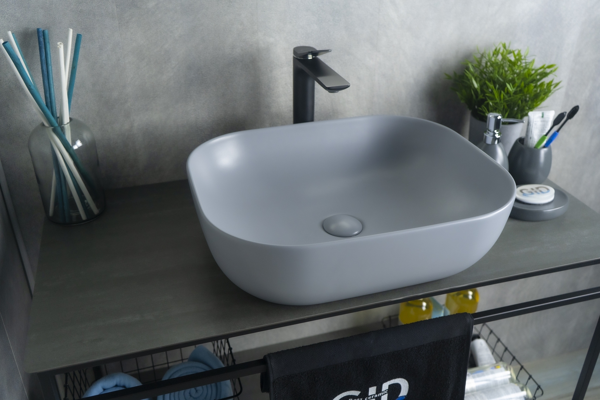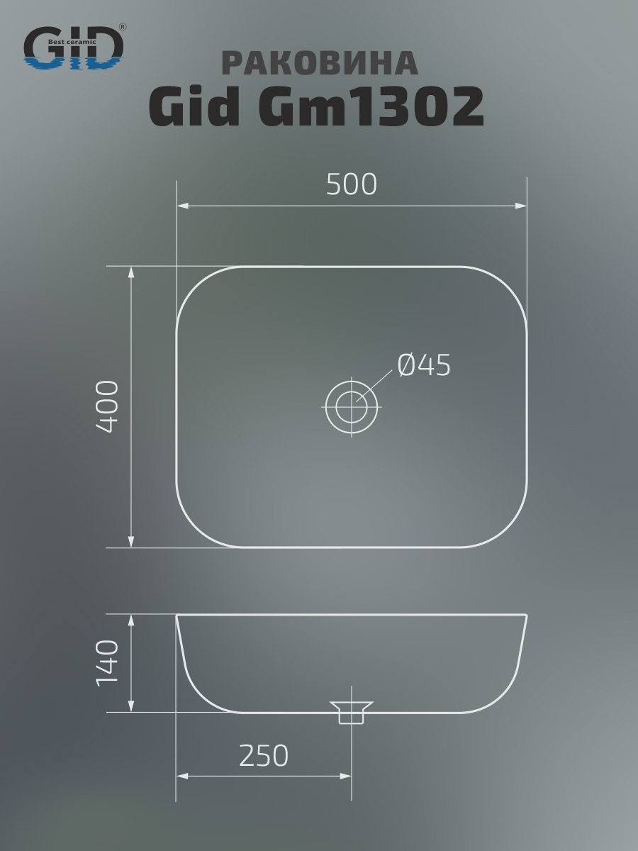 Раковина Gid Gm1302 53336 накладная серая матовая 50x40x14