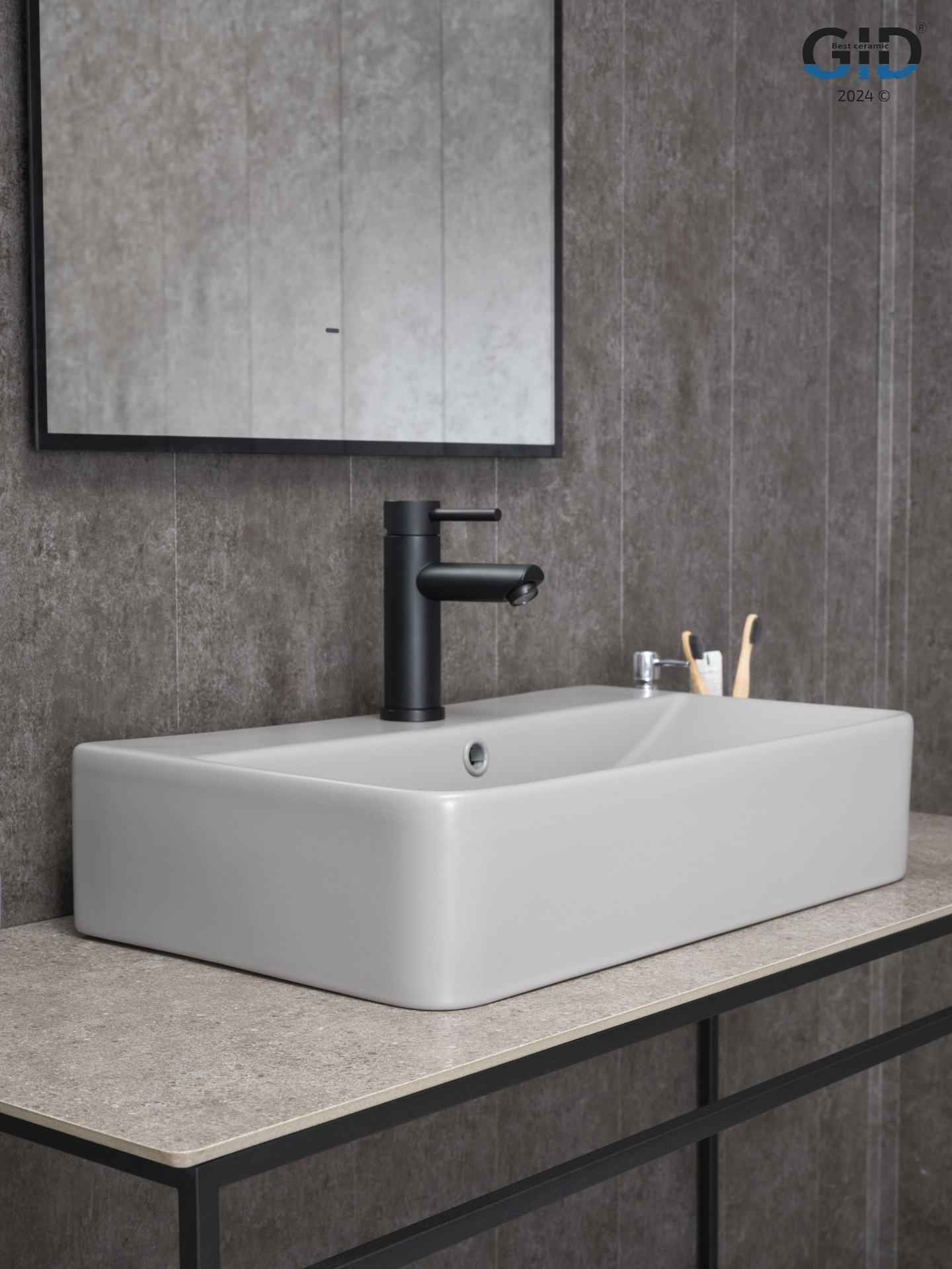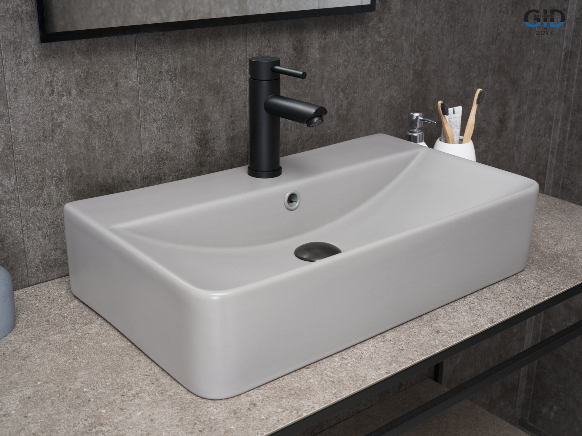 Раковина Gid Gm1344 52236 накладная серая матовая 61x35.5x14