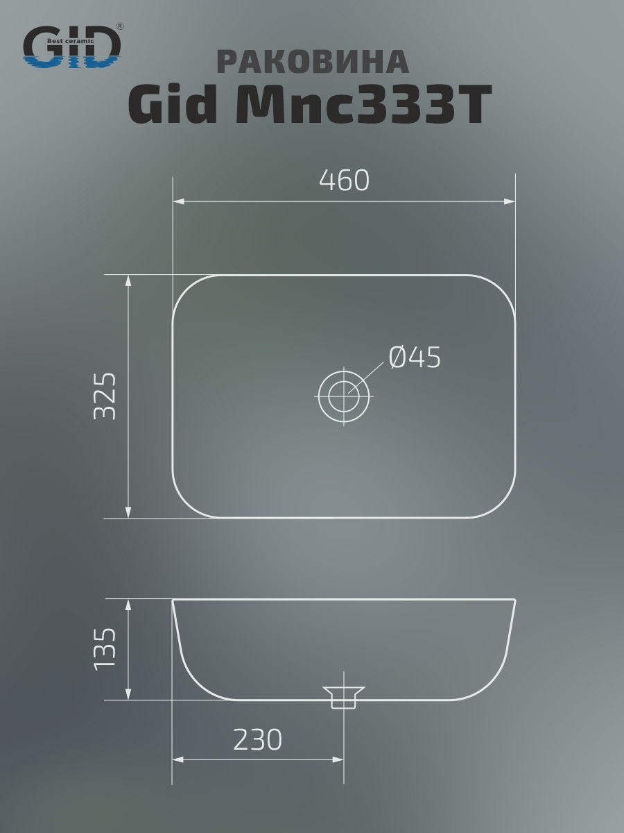 Раковина Gid Mnc333T 54474 накладная под камень глянцевый 46x32.5x13.5
