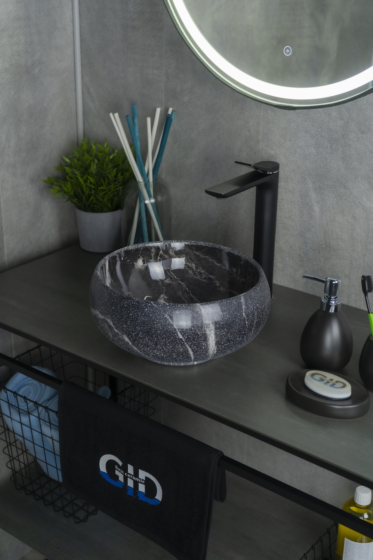 Раковина Gid Mnc480 54432 накладная под камень глянцевая 32x32x15.5