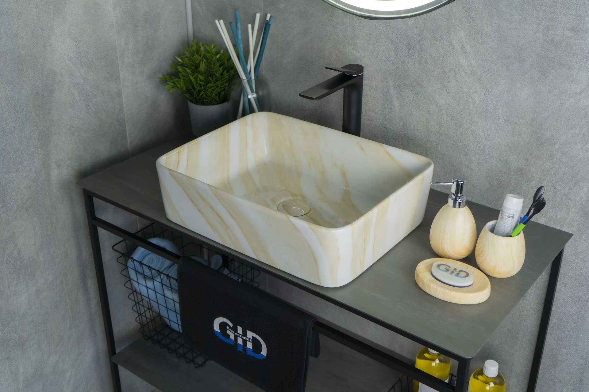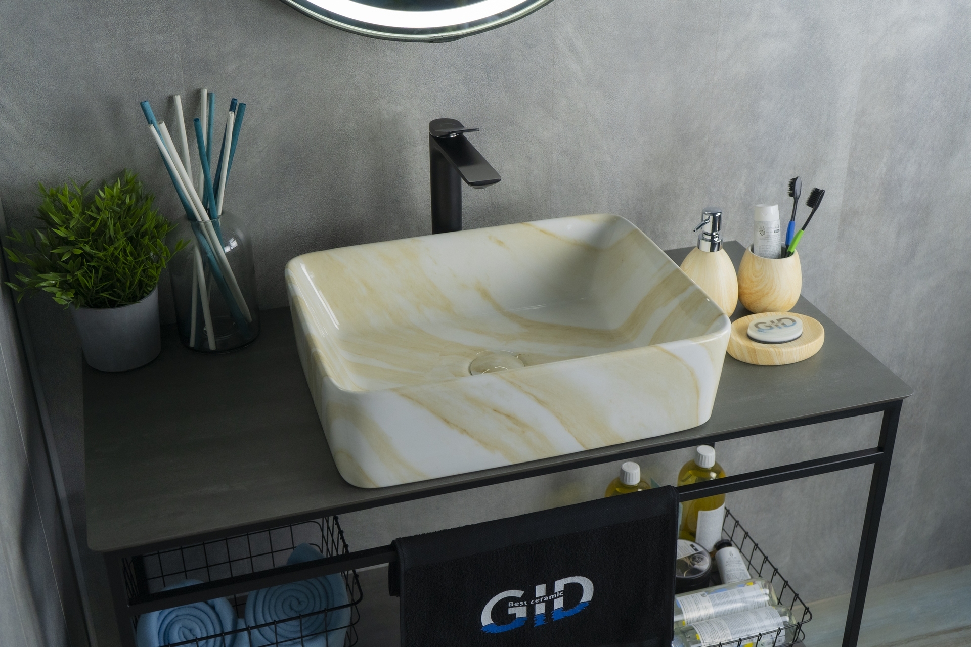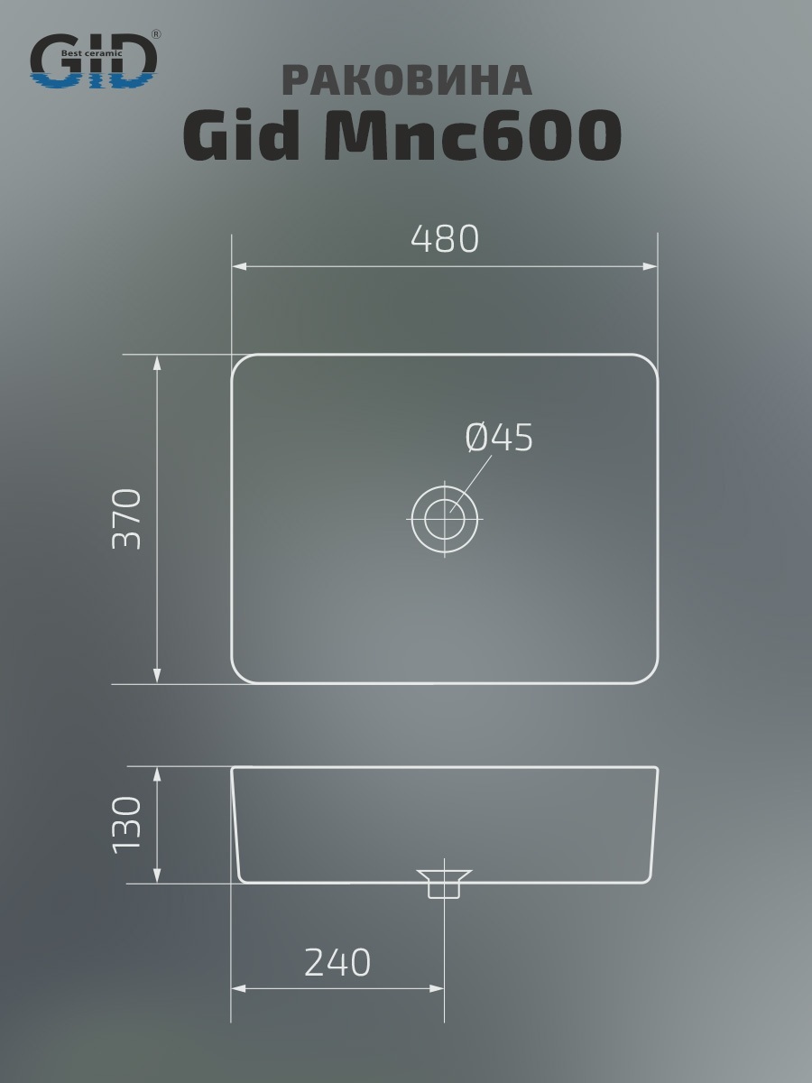 Раковина Gid Mnc600 54459 накладная под камень глянцевая 48x37x13
