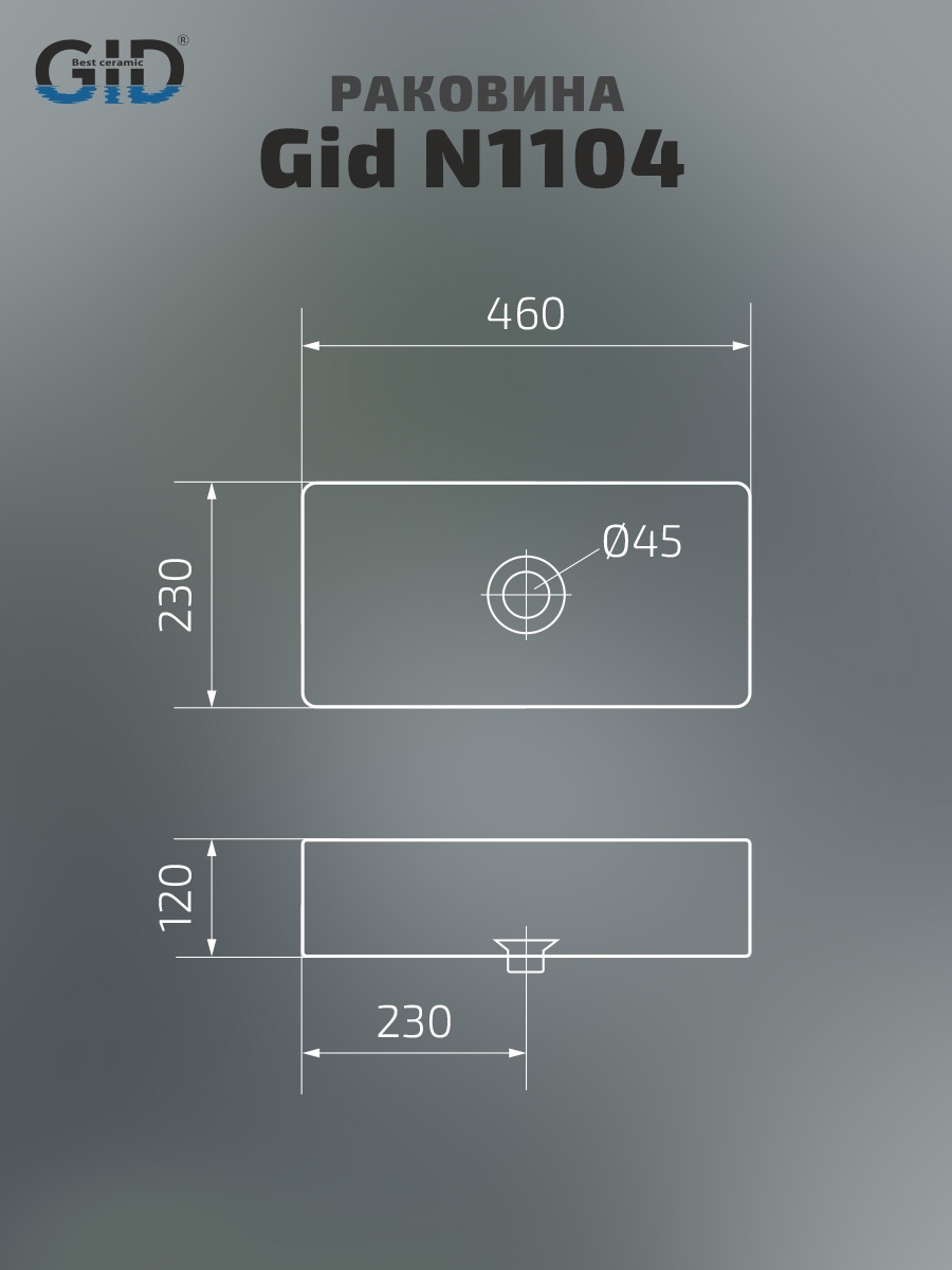 Раковина Gid N1104 51224 накладная белая 46x23x12