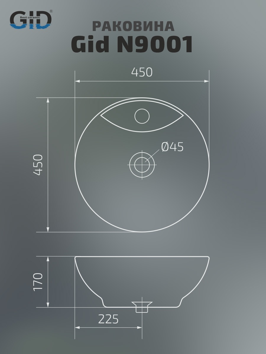 Раковина Gid N9001 51101 накладная белая 45x45x17