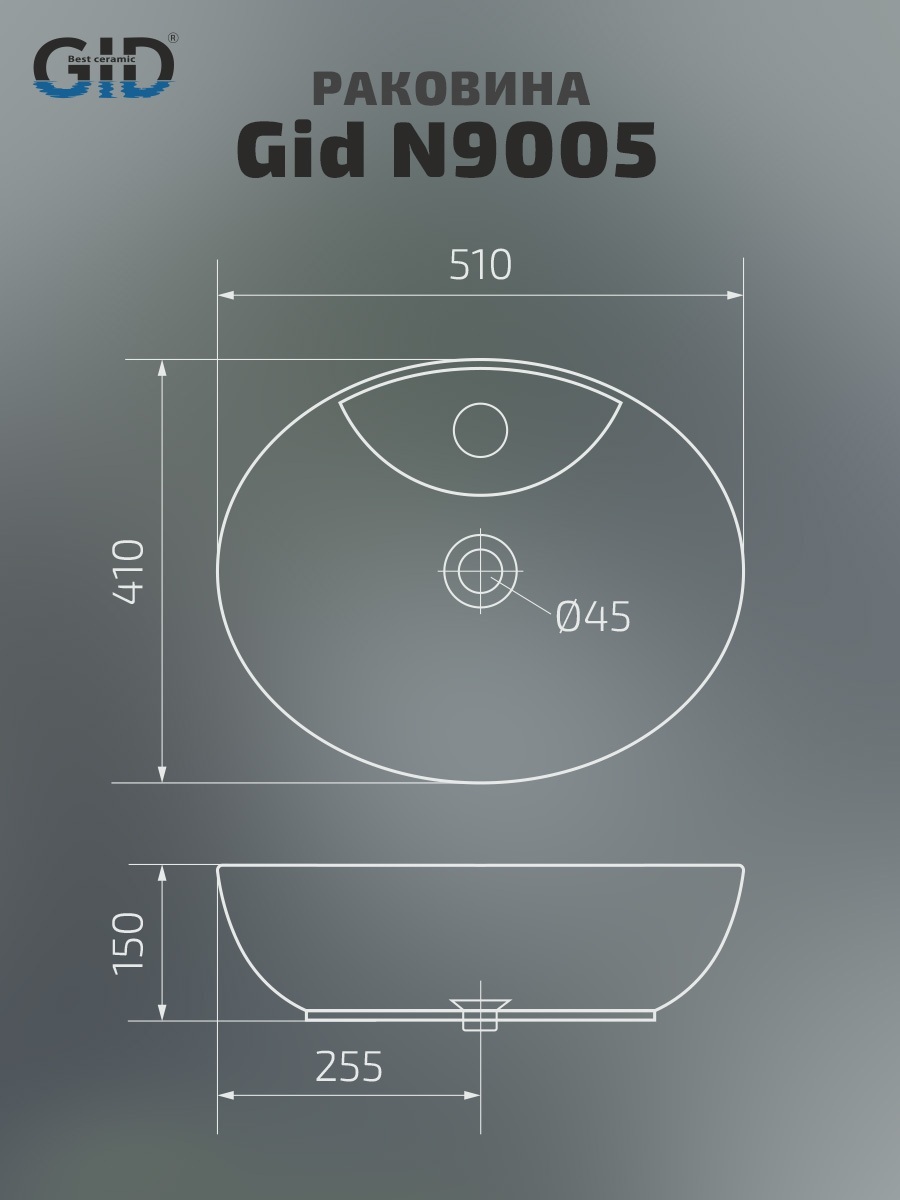 Раковина Gid N9005 51206 накладная белая 51x41x15