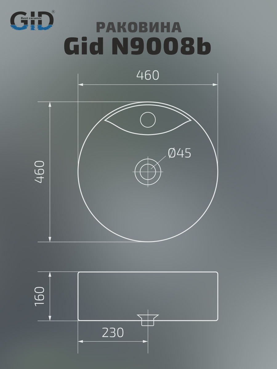 Раковина Gid N9008b 51104 накладная белая 46x46x16