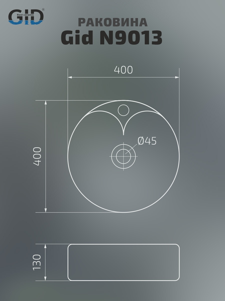 Раковина Gid N9013 51208 накладная белая 40x40x13