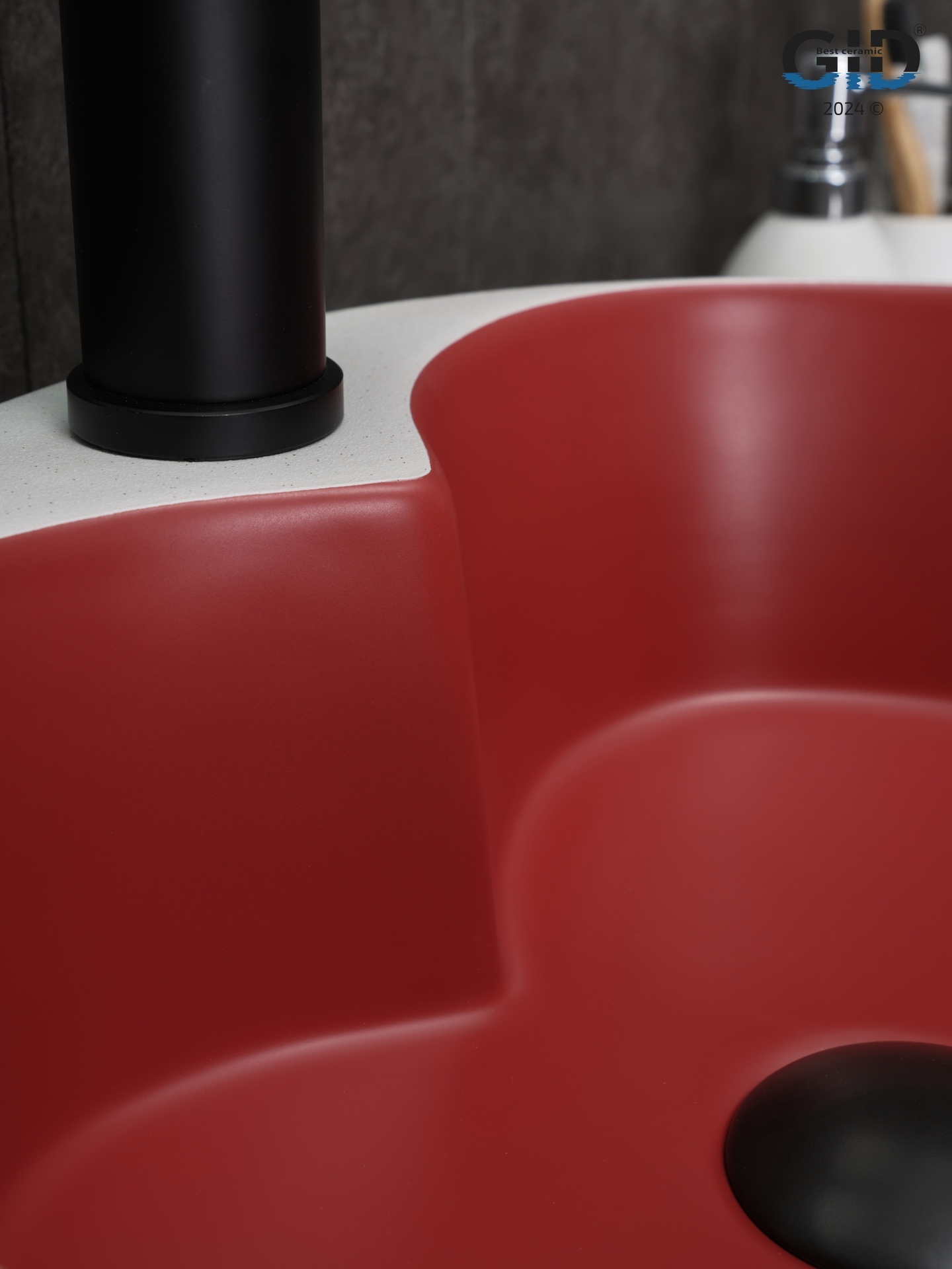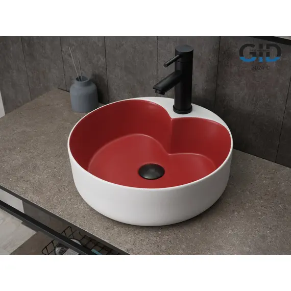 Раковина Gid N9013LS 52237 накладная красная матовая / белый графит 40x40x13