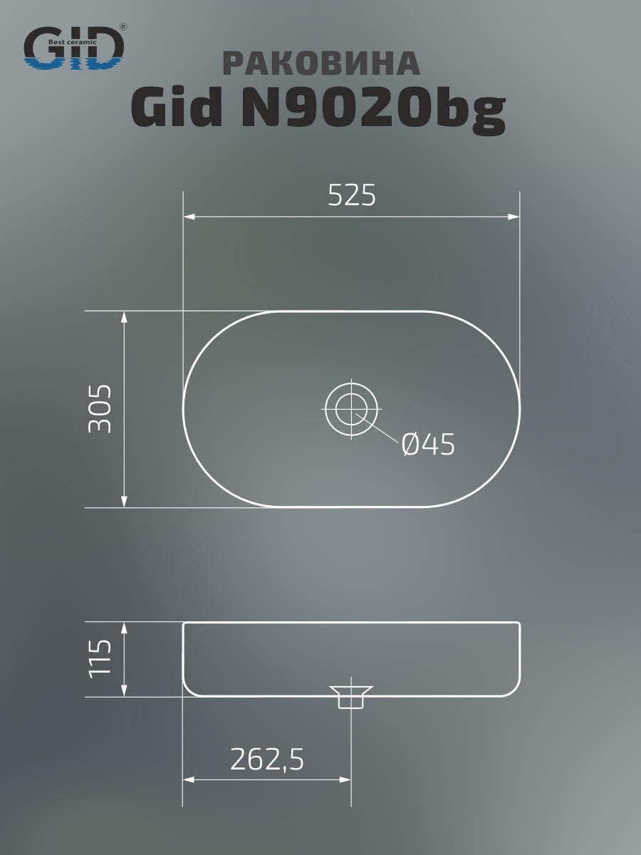 Раковина Gid N9020bg 53379 накладная черная графит 52.5x30.5x11.5