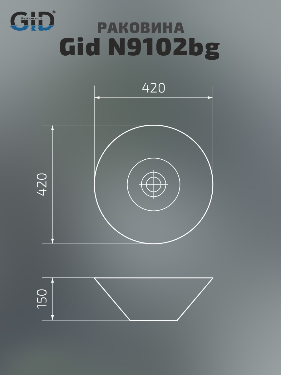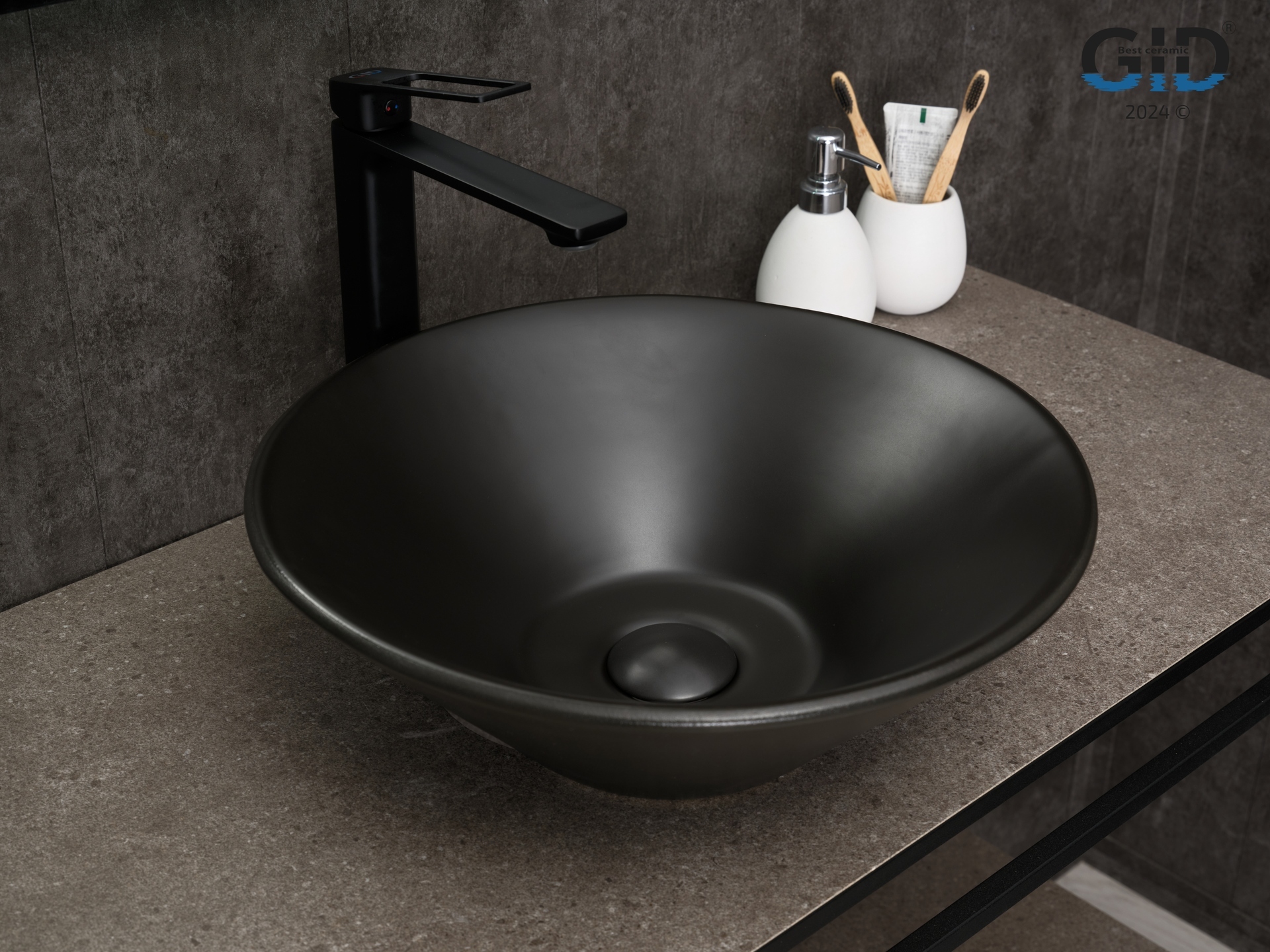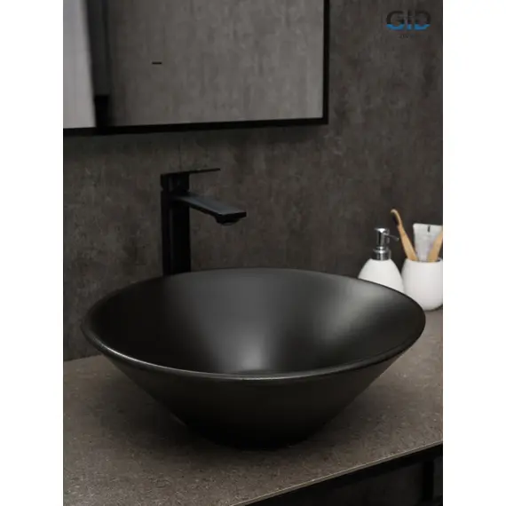 Раковина Gid N9102bg 53383 накладная черная графит 42x42x15