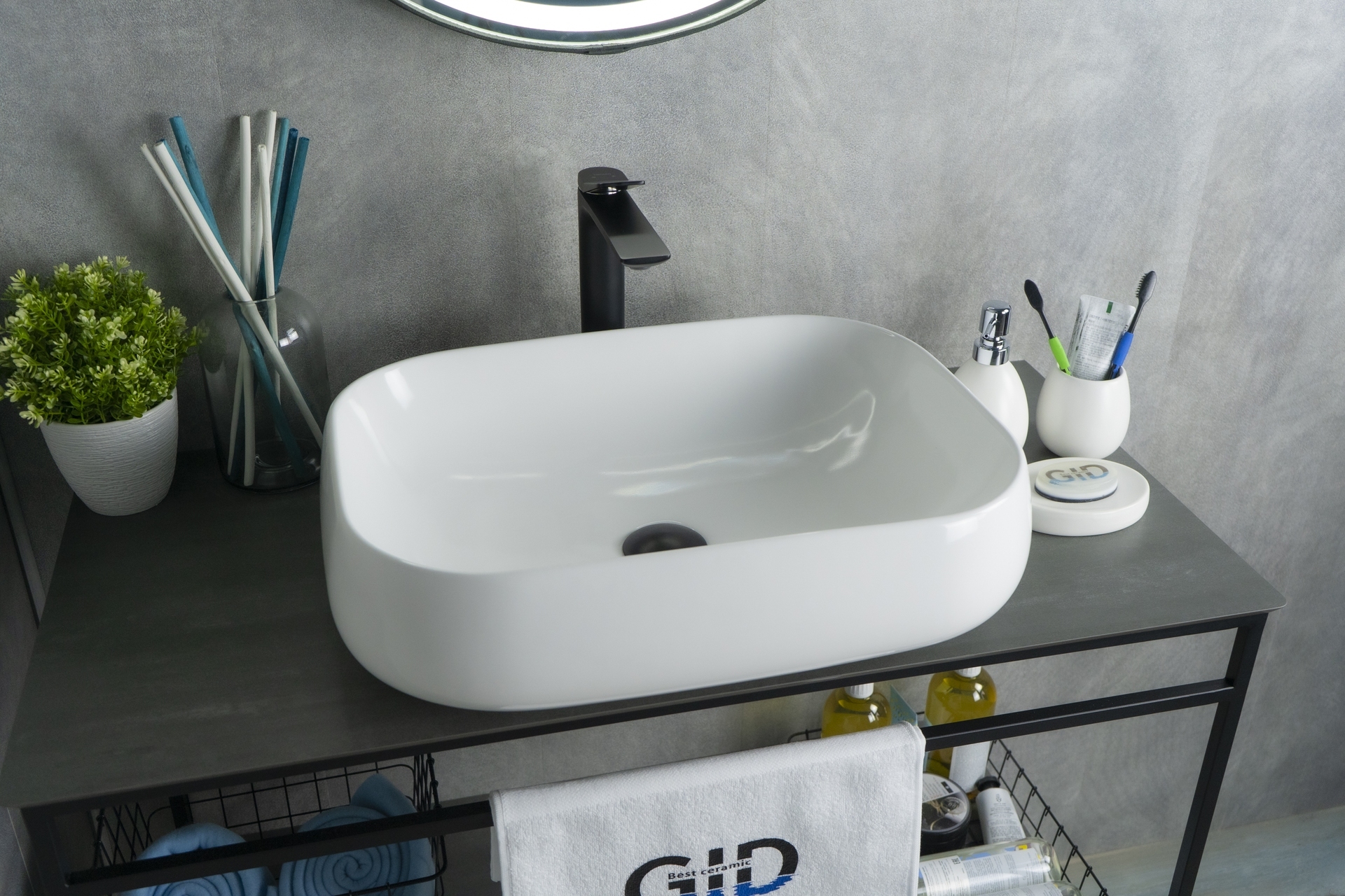 Раковина Gid N9243 51135 накладная белая 56x42x14