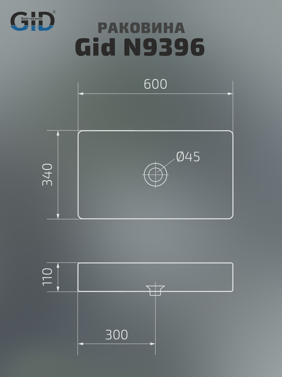 Раковина Gid N9396 51140 накладная белая 60x34x11