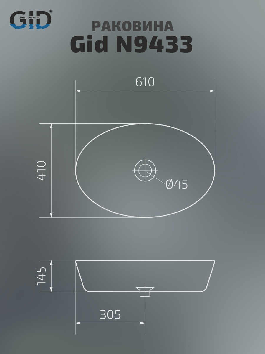 Раковина Gid N9433 51148 накладная белая 61x41x14.5
