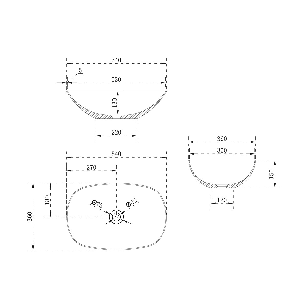 Раковина из искусственного камня Vincea VBS-6T12MW, 540*360*150, белый матовый