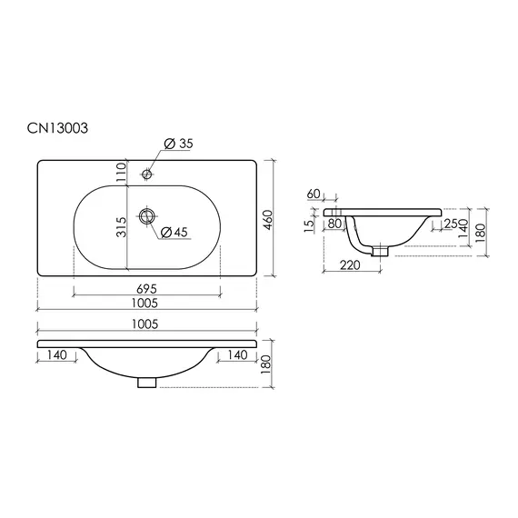 Раковина накладная CERAMICANOVA Sabo 1000x460x130 мм, черный матовый