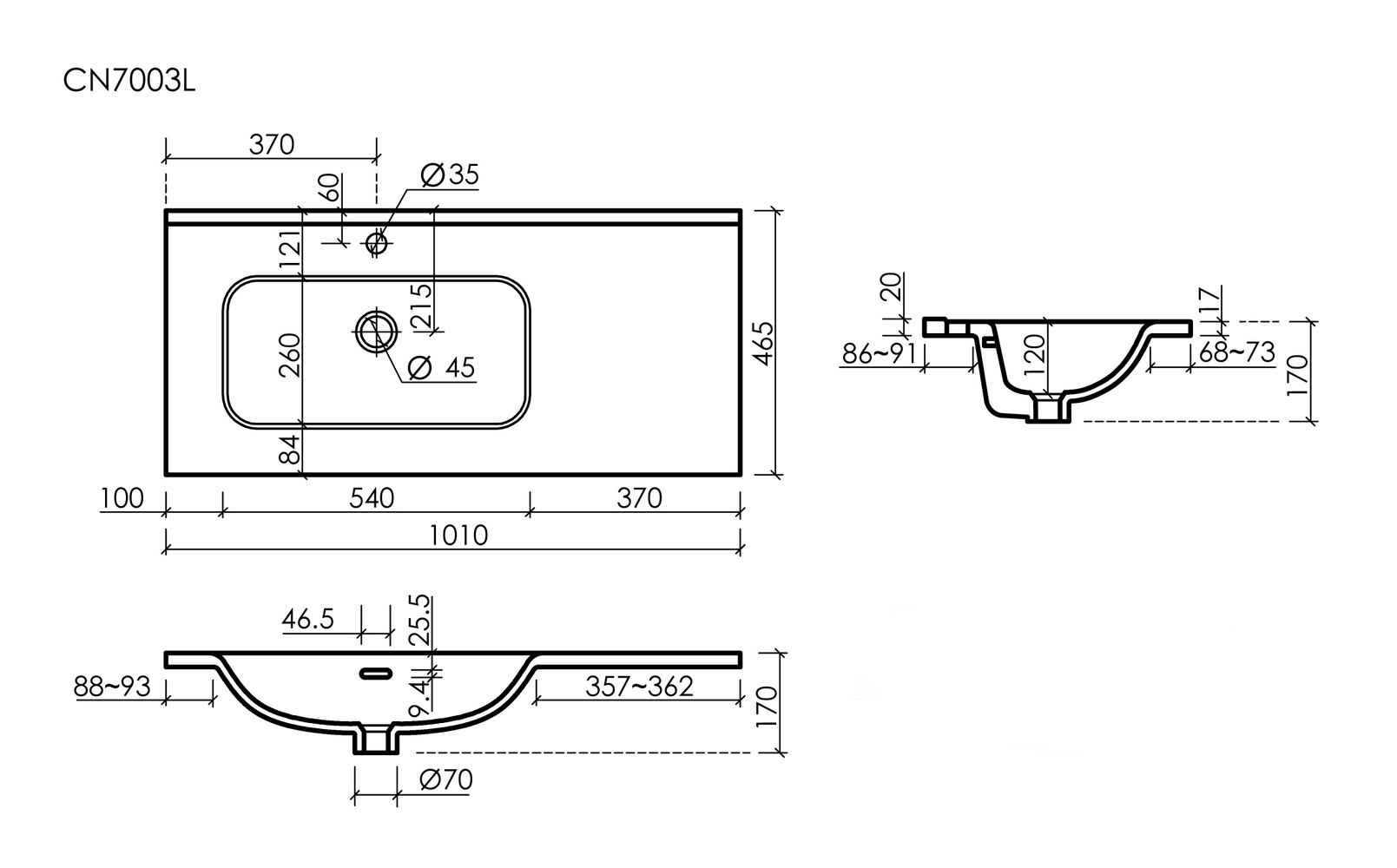 Раковина накладная мебельная CERAMICANOVA Element, чаша слева, с отверстием под смеситель, 1010x465x180 мм, белый, арт. CN7003L
