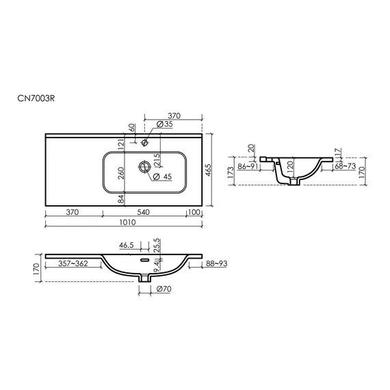 Раковина накладная мебельная CERAMICANOVA Element 1010x465x180 мм, белый