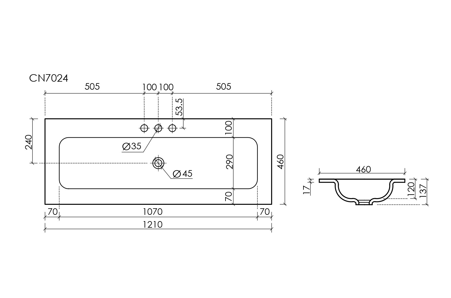 Раковина накладная мебельная CERAMICANOVA Grace прямоугольная 1210x457x137 мм с тремя отверстиями под смеситель, белый