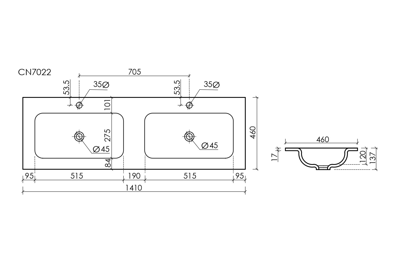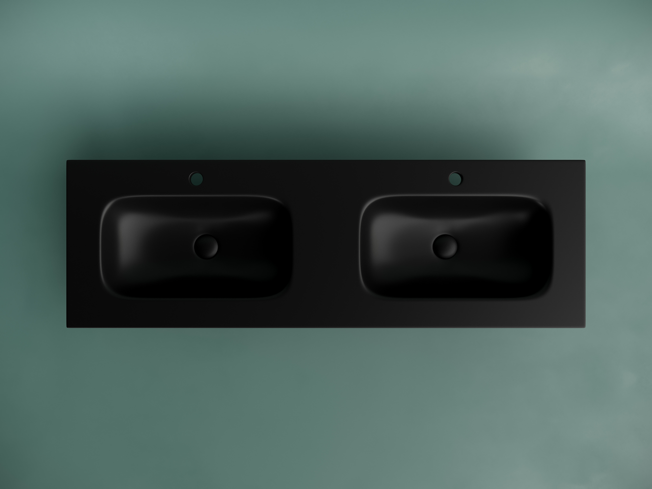 Раковина накладная мебельная CERAMICANOVA Grace прямоугольная 1410x457x137 мм с двумя чашами и отверстиями под смеситель, черный матовый