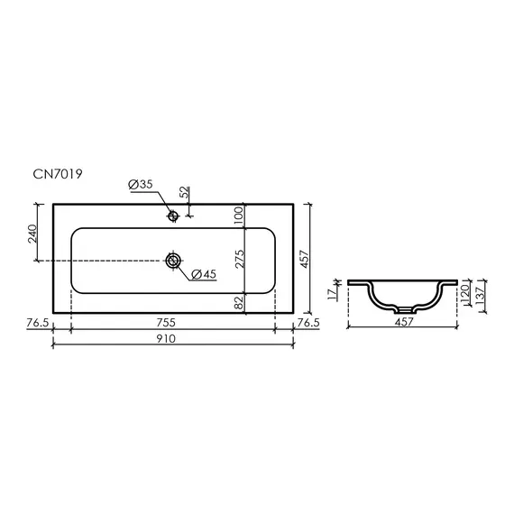 Раковина накладная мебельная CERAMICANOVA Grace прямоугольная 910x457x137 мм с отверстием под смеситель, черный матовый
