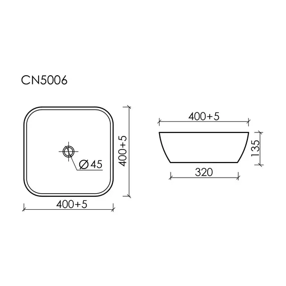 Умывальник чаша накладная квадратная CERAMICANOVA Element 400x400x140 мм, белый