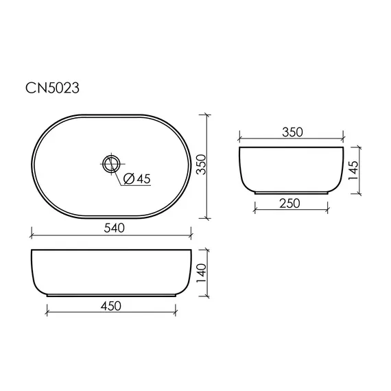 Умывальник чаша накладная овальная CERAMICANOVA Element 540x350x145 мм, белый