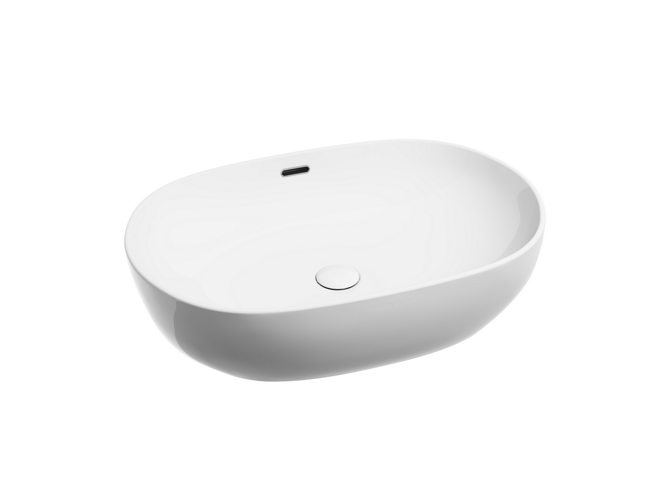 Умывальник чаша накладная овальная со сливом переливом CERAMICANOVA Element 610x420x155 мм, белый