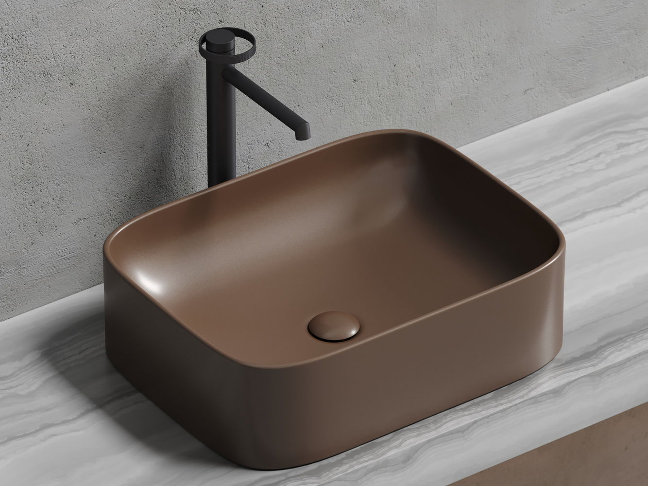 Умывальник чаша накладная прямоугольная CERAMICANOVA Element 505x380x150 мм, коричневый