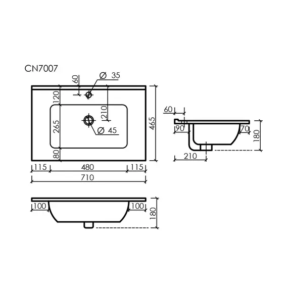 Умывальник накладной CERAMICANOVA Element прямоугольный 710x465x180 мм, черный матовый