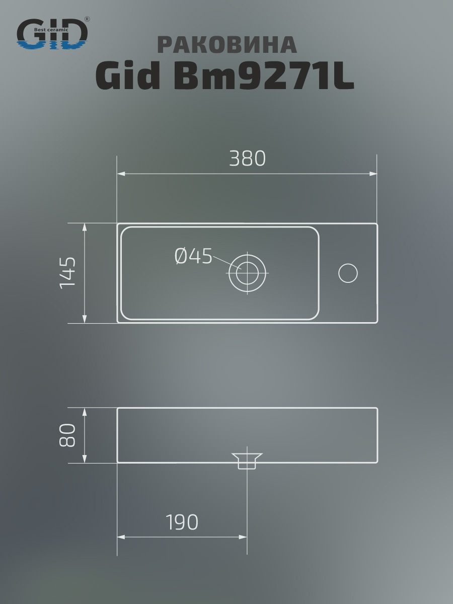 Раковина Gid Bm9271L 62202L подвесная черная матовая 38.0x14.5x8