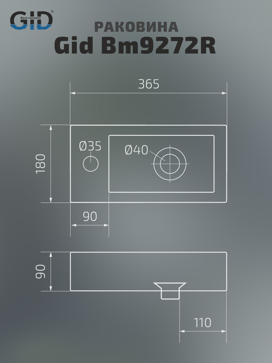 Раковина Gid Bm9272R 62203R подвесная черная матовая 36.5x18x9
