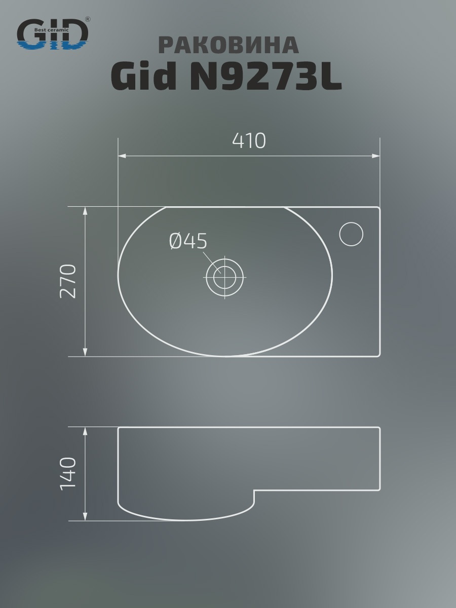 Раковина Gid N9273L 61106L подвесная белая 41x27x14