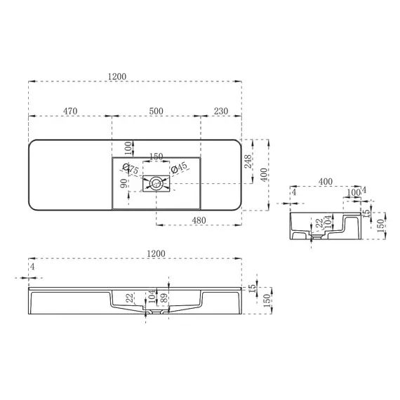 Раковина из искусственного камня Vincea VWB-6S412MW, 1200*400*150, белый матовый