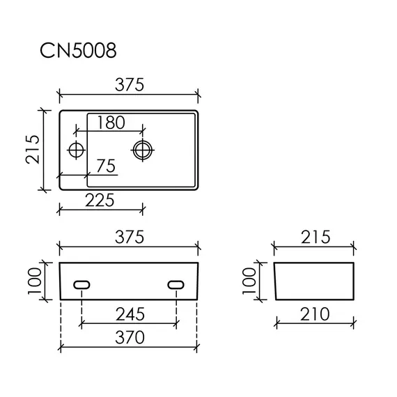 Умывальник подвесной прямоугольный (отверстие под смеситель L) Element 375x215x100мм