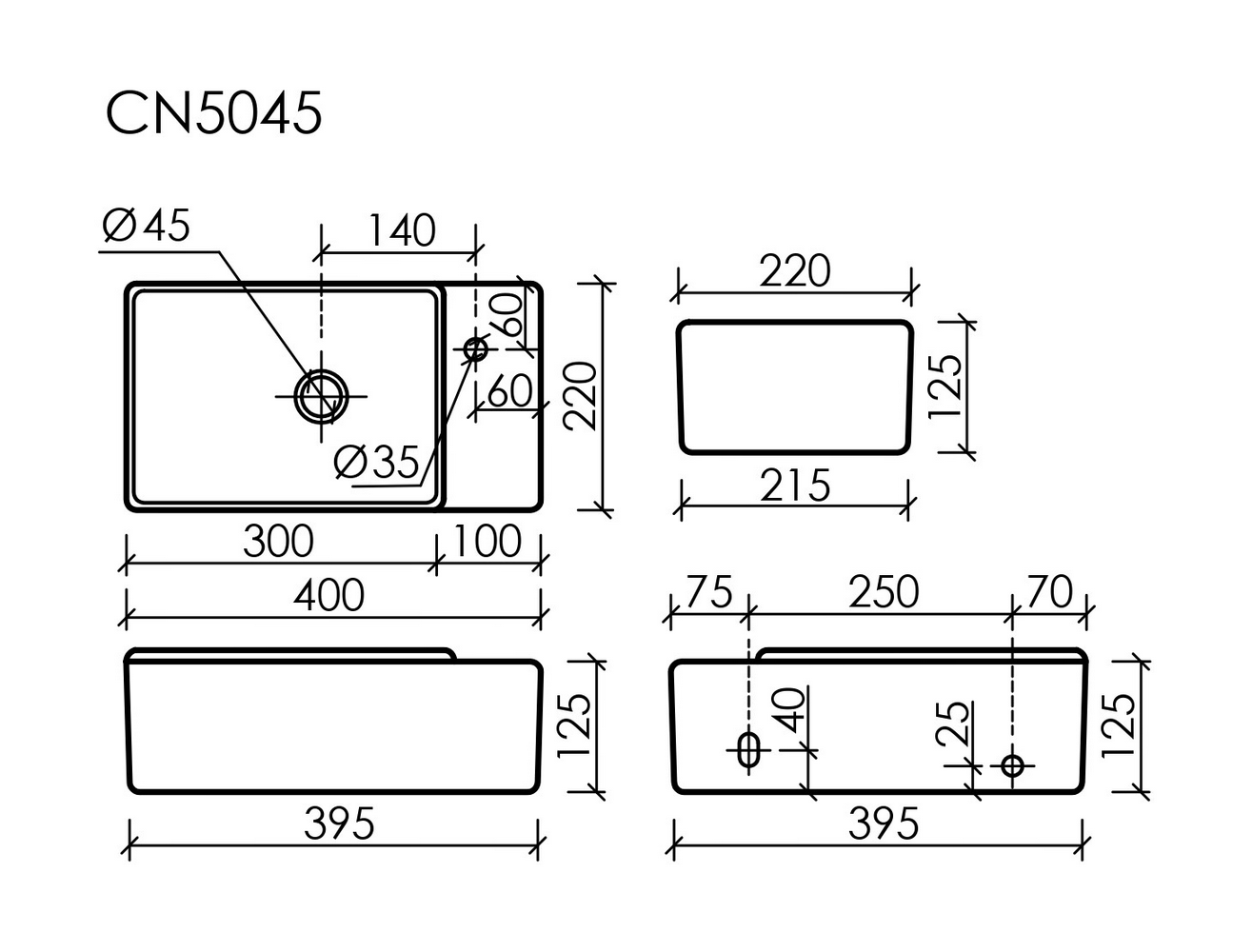Умывальник подвесной прямоугольный CERAMICANOVA Element 395x220x125 мм, черный матовый