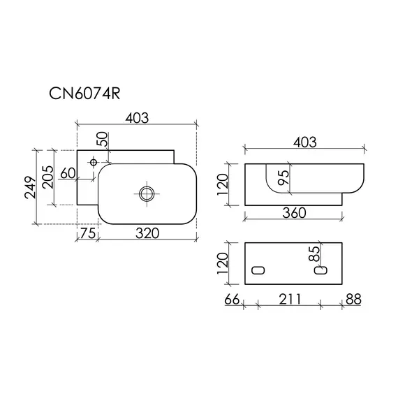 Рукомойник подвесной CERAMICANOVA Element прямоугольный с отверстием под смеситель 403x249x140 мм, белый