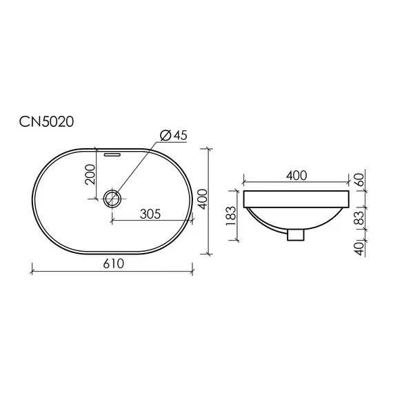 Умывальник овальный встраиваемый сверху в столешницу CERAMICANOVA Element 600x400x195 мм, белый