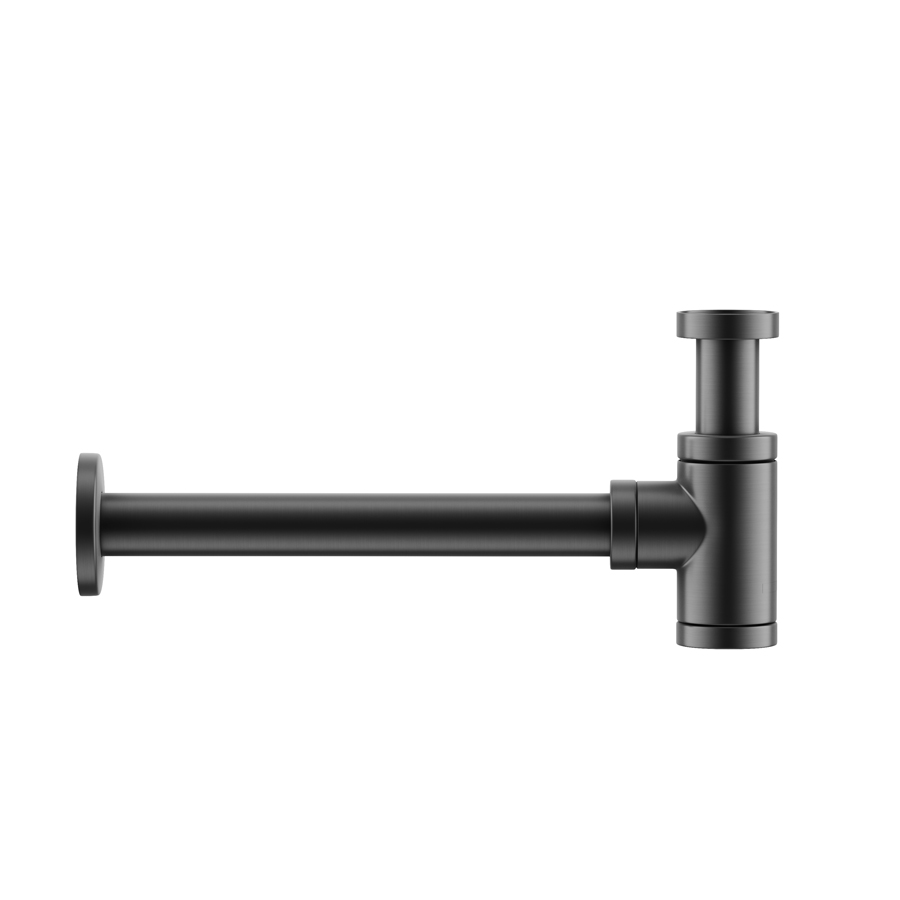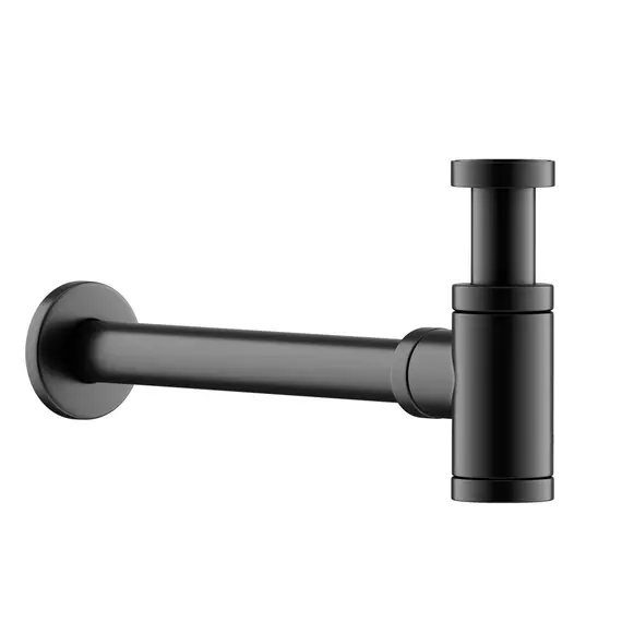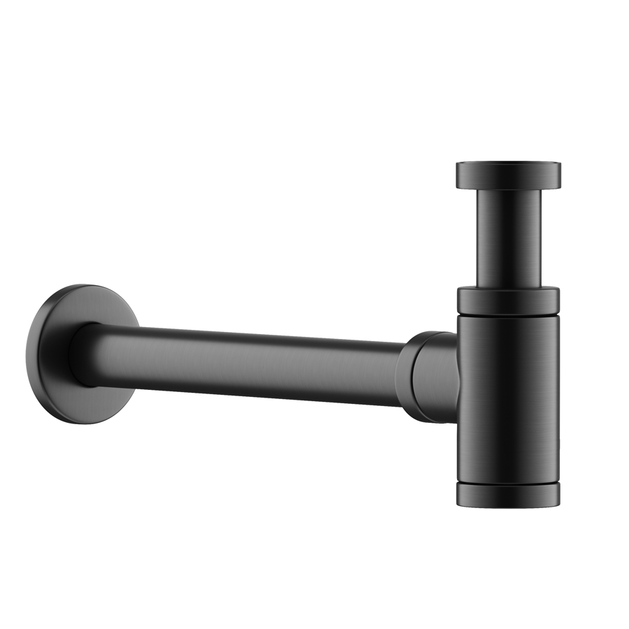 Дизайнерский бутылочный сифон для раковины с мокрым затвором (гидрозатвором), донная часть снимается для очистки, с возможностью регулировки по высоте при монтаже, вороненая сталь, арт 70001GG