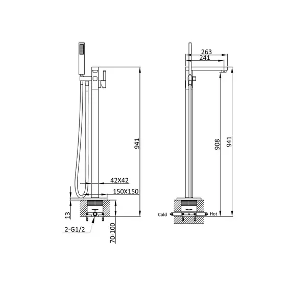 Смеситель для ванны напольный Vincea VTF-101CH однорычажный, хром