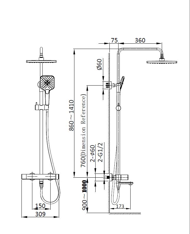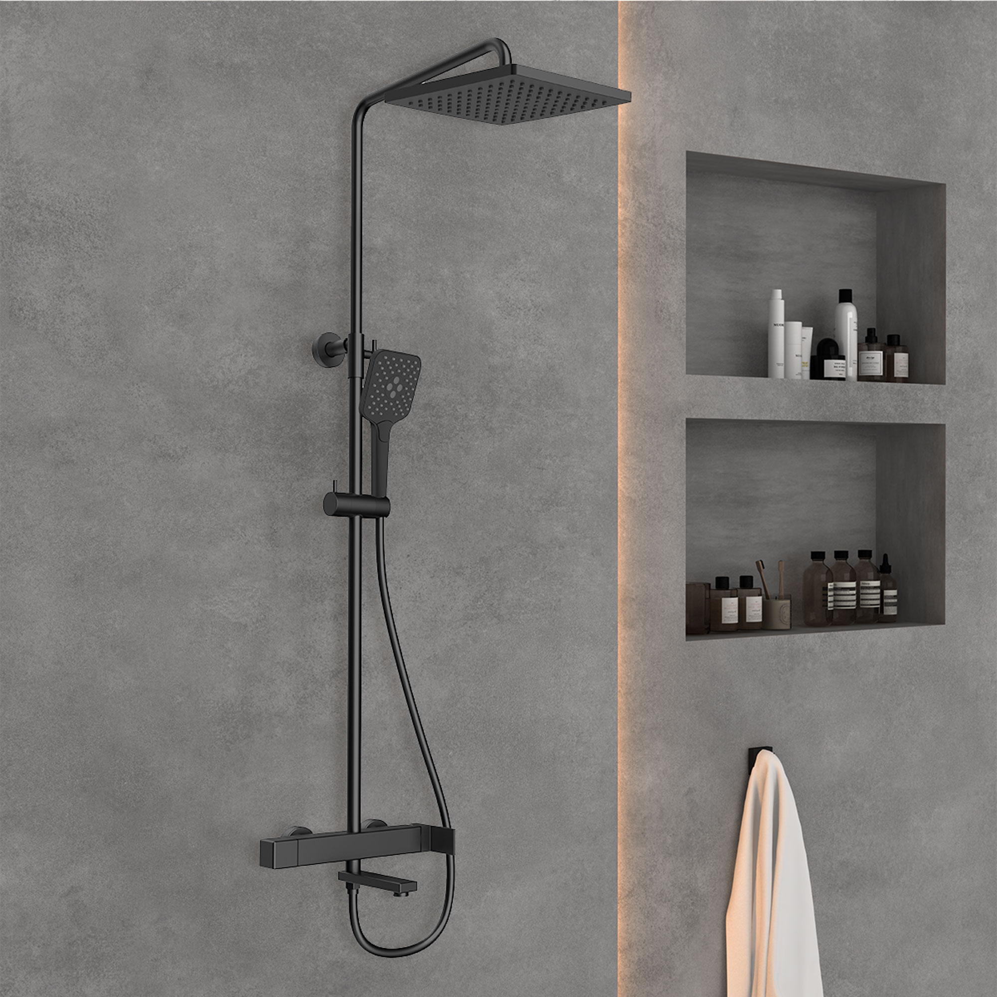 Душевая стойка Vincea Cube VSFS-1C1MB с изливом, черный