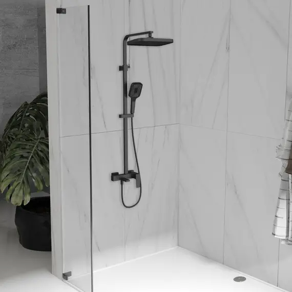 Душевая стойка Vincea Cube VSFS-4C12MB с изливом, черный матовый