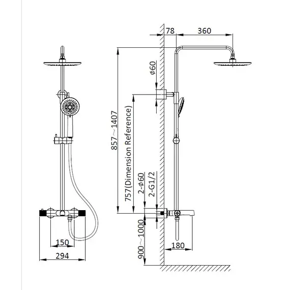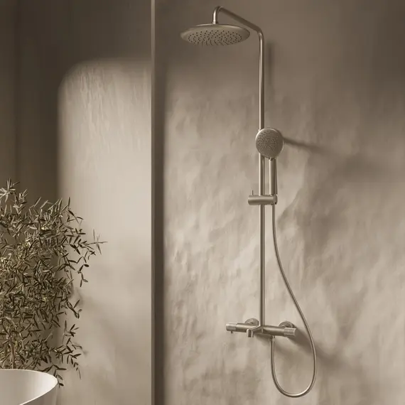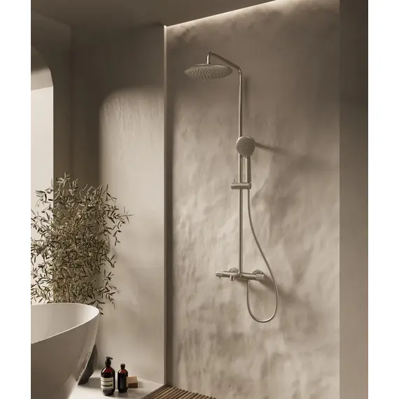 Душевая стойка Vincea Desire VSFS-1D1TBN термостатическая с изливом, 25см верх душ, брашированный никель