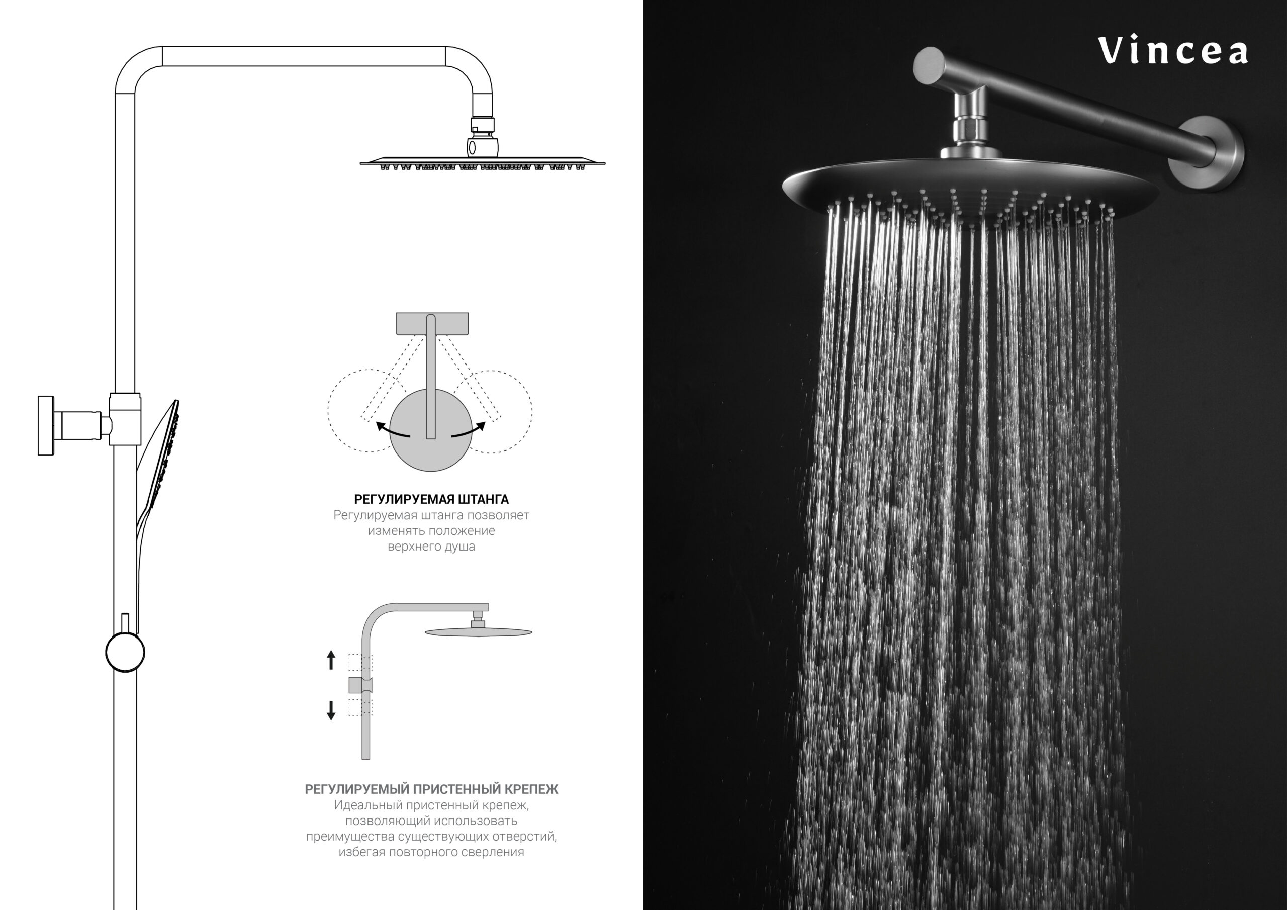 Душевая стойка Vincea Esse VSFS-1E1TCH термостатическая, хром