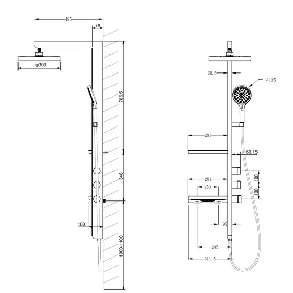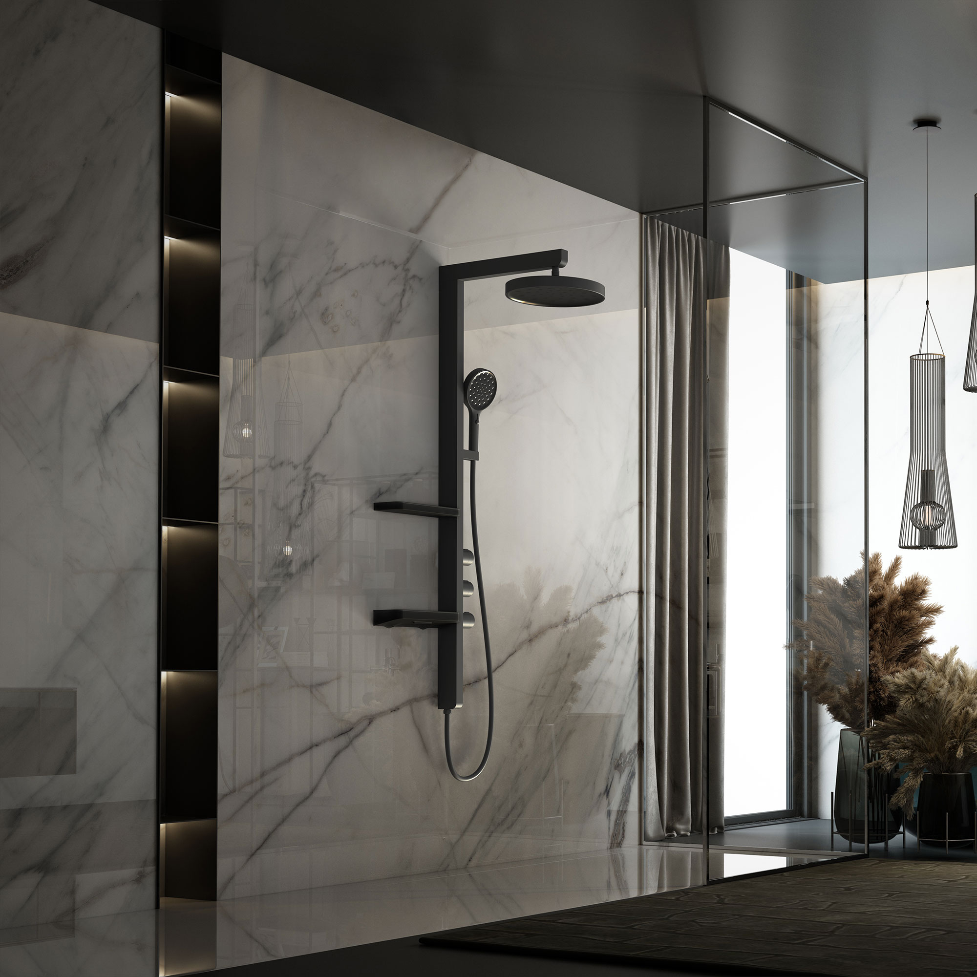 Душевая стойка Vincea Inspire VSFS-3I11MB с изливом, 30см верх душ, черный