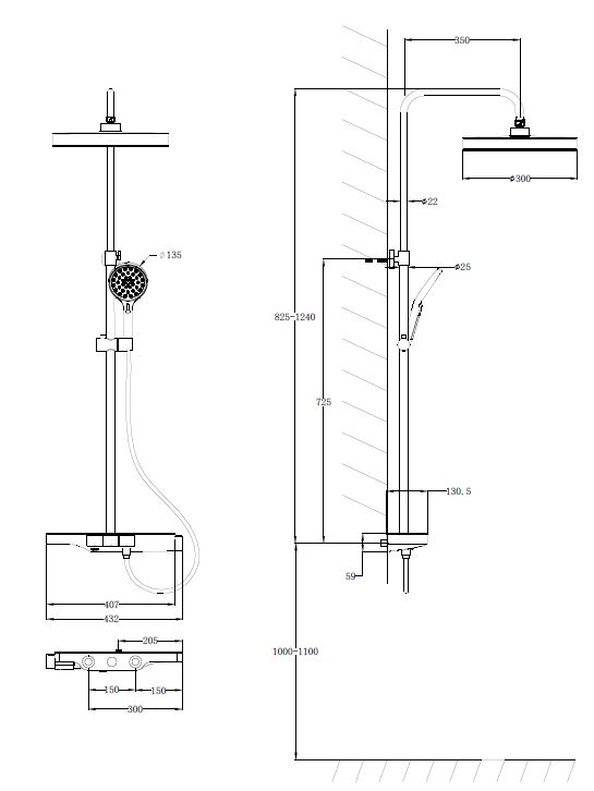 Душевая стойка Vincea Inspire VSFS-3I12TGM термостатическая с изливом, 30см верх.душ, вороненая сталь