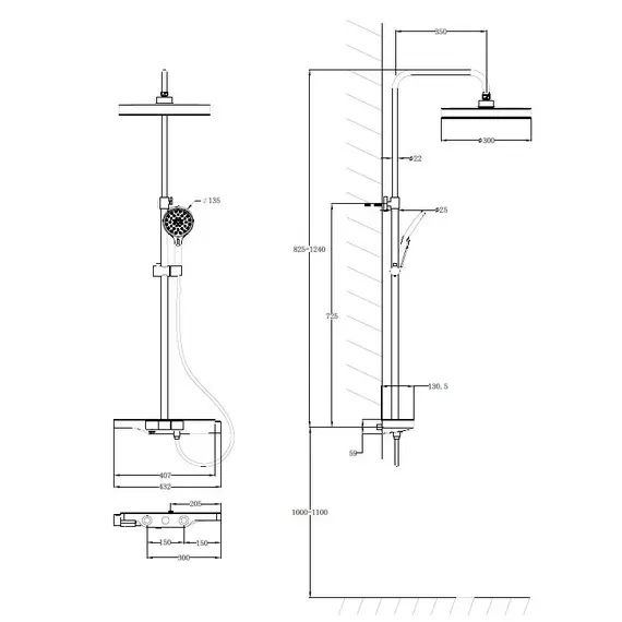 Душевая стойка Vincea Inspire VSFS-3I12TMB термостатическая с изливом, 30см верх.душ, черный