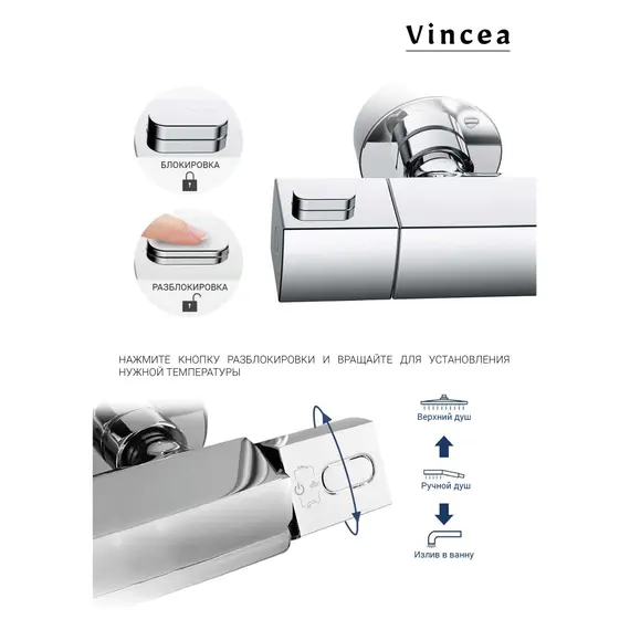 Душевая стойка Vincea Next VSFS-1N0TCH термостатическая, хром