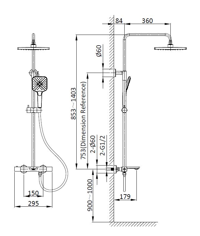 Душевая стойка Vincea Next VSFS-1N1TCH термостатическая, хром