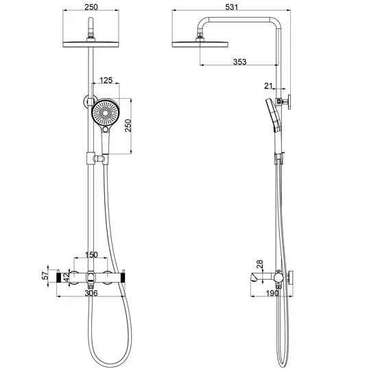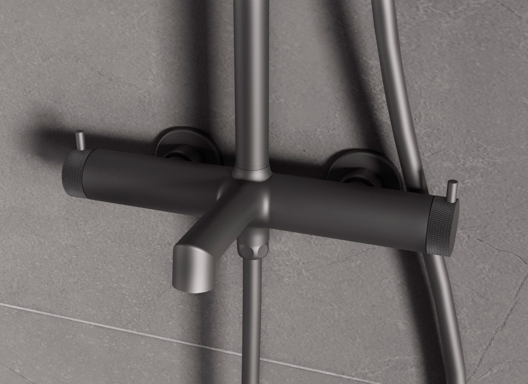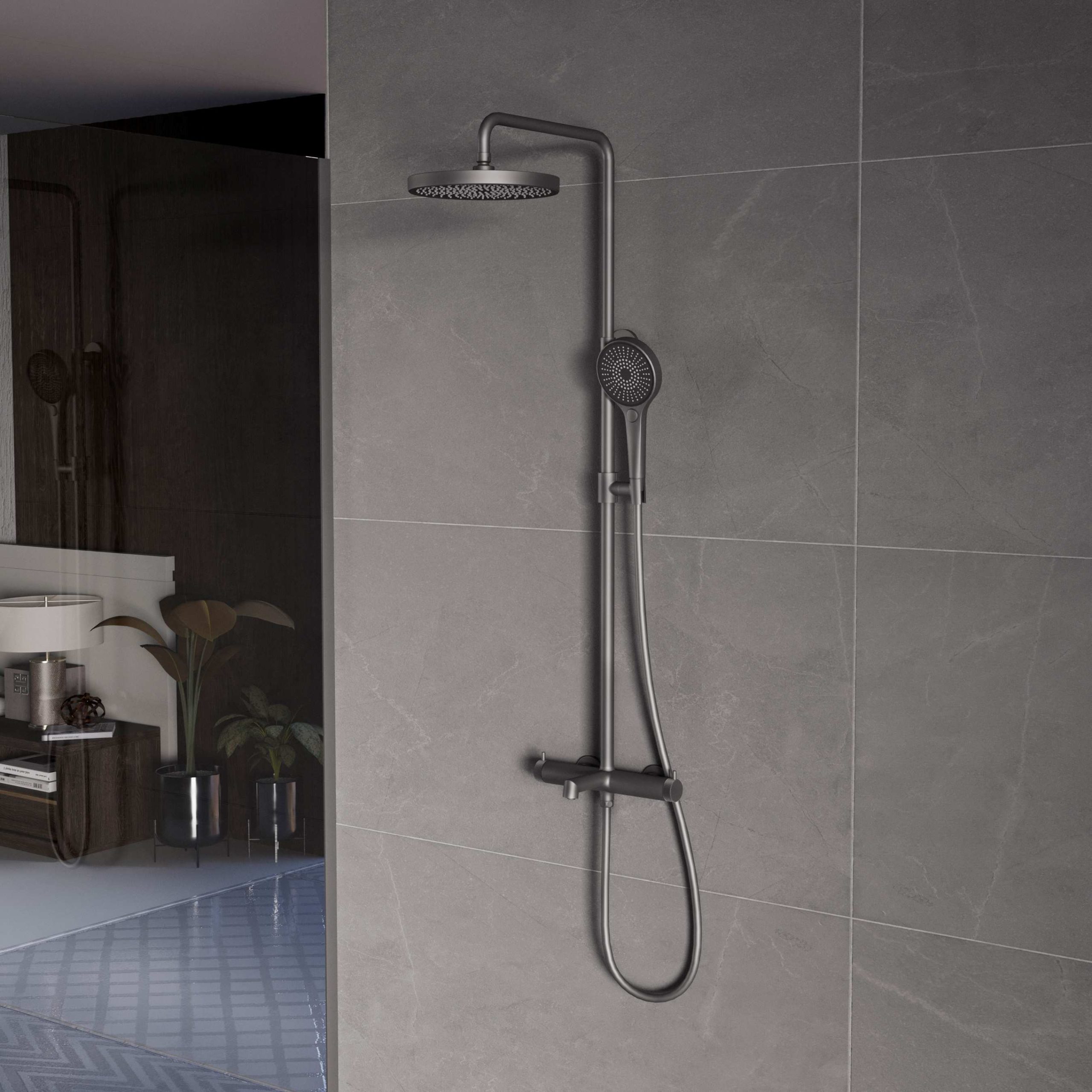 Душевая стойка Vincea Rim VSFS-2RM1GM с изливом, вороненая сталь
